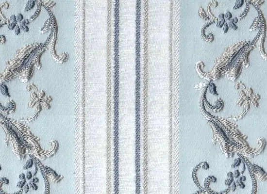 Материал не садится после обработки водой, отличается высокой эластичностью и не мнётся, долго держит цвет, абсолютно не линяет и обладает приятной бархатистой структурой, на ощупь напоминающей вельвет. Оригинальности коллекции придаёт мелкий графический компаньон, разбавляющий грациозность цветочных вензелей. Колористическая карта представлена в 5 различных решениях, включающих в себя серо-голубой, кремово-карамельный и кофейно-золотистые оттенки, способствующие созданию в интерьере уверенной спокойной обстановки, так необходимой жителям современного мегаполиса. Благодаря вплетению нитей различных оттенков, внешняя фактура ткани переливается благородным блеском, а мягкость материала приятно удивит даже самых искушённых дизайнеров.